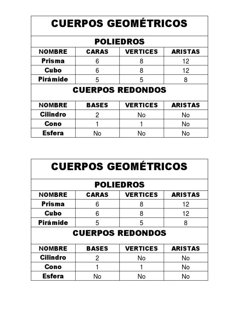 Y 1 cara lateral curva; ٣ ربيع الآخر ١٤٣٧ هـ. Geométricos, los tipos de cuerpos que hay, sus partes y una clasificación de poliedros según sus caras, vértices y aristas. Tiene 6 caras, 8 vértices y 12 aristas. Esfera, cubo, pirámide, cilindro… son todos cuerpos geométricos.